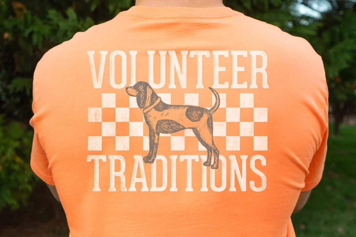 Enjoy our new Volunteer Traditions short sleeve tee! This shirt features the Bluetick Checkerboard design on the back of the tee and a pocket on the front. 100% Soft Cotton